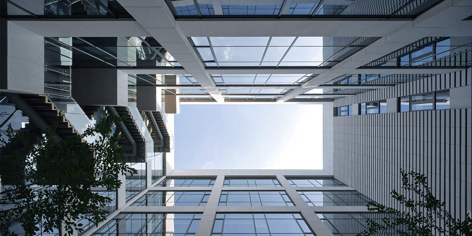在尊重園區(qū)建筑整體設(shè)計(jì)風(fēng)格的前提下,我們以單純方整的形體回應(yīng)場地狹長的特性,每個(gè)體量都如雕塑一般,較小的體形系數(shù)保證節(jié)能的同時(shí)也實(shí)現(xiàn)了高利用率的樓內(nèi)辦公空間。 建筑內(nèi)部多種功能空間相互獨(dú)立,互不影響,空間圍繞景觀中庭展開,同時(shí)結(jié)合貫穿在中庭景觀中的空中平臺和架空的連廊形成立體化的內(nèi)部步行系統(tǒng)。創(chuàng)造參與性強(qiáng),多樣性,多元化的空間體驗(yàn)。
