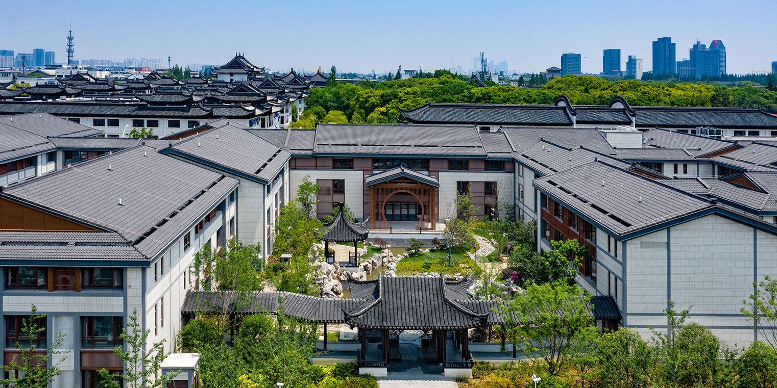項目位于蘇州古城區(qū),毗鄰千年佛教古剎——西園戒幢律寺。設(shè)計的總體布局在結(jié)合傳統(tǒng)建筑的生長形態(tài)和建筑與庭院空間比例的基礎(chǔ)上進行城市肌理的織補,形成與西園寺融為一體的城市圖底。