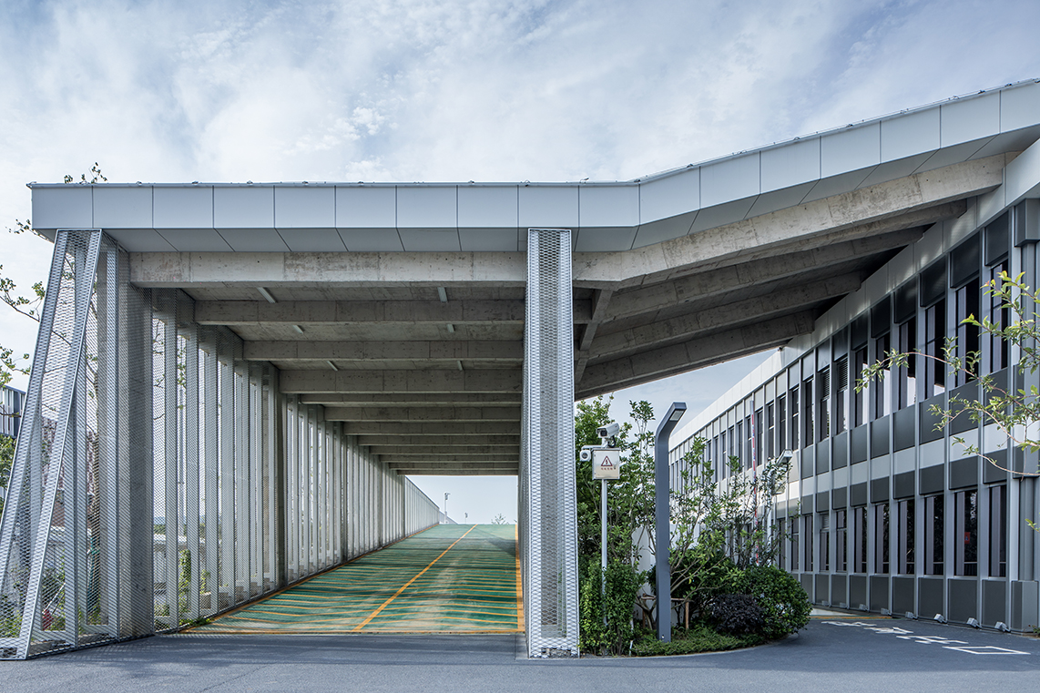 項(xiàng)目借鑒了“上蓋”設(shè)計(jì)的概念,將公交和環(huán)衛(wèi)兩個單位的停車場及其配套用房上下“疊加”在一起,安置進(jìn)了原本只能容納公交停車樞紐使用的地塊,實(shí)現(xiàn)了場地的疊合利用。為減少作業(yè)干擾,設(shè)計(jì)對公交和環(huán)衛(wèi)車輛的動線進(jìn)行分流,使其相對獨(dú)立?;诠蚕淼睦砟?,對兩家單位的配套用房進(jìn)行整合,以優(yōu)化空間組合。停車場質(zhì)樸裸露的混凝土構(gòu)件被金屬網(wǎng)包裹,與辦公建筑精致的玻璃和鋁板幕墻形成對比,相得益彰。