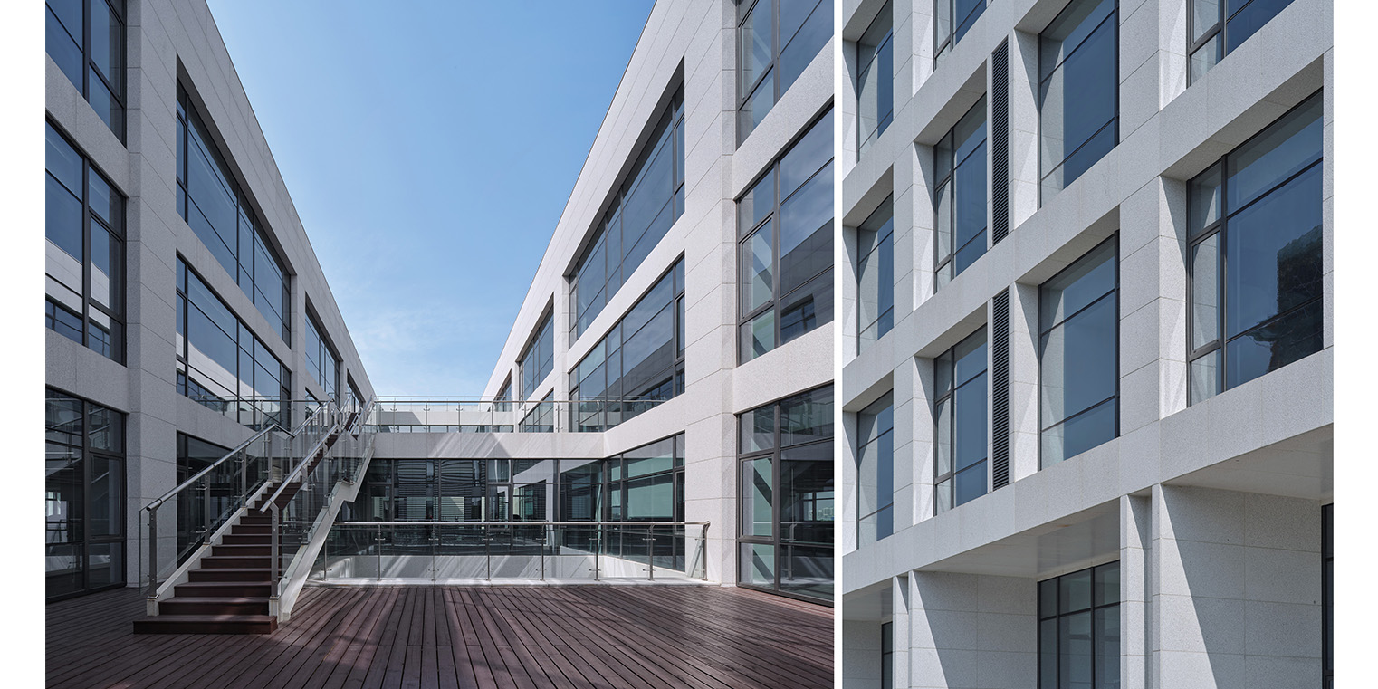 在尊重園區(qū)建筑整體設(shè)計(jì)風(fēng)格的前提下,我們以單純方整的形體回應(yīng)場地狹長的特性,每個(gè)體量都如雕塑一般,較小的體形系數(shù)保證節(jié)能的同時(shí)也實(shí)現(xiàn)了高利用率的樓內(nèi)辦公空間。 建筑內(nèi)部多種功能空間相互獨(dú)立,互不影響,空間圍繞景觀中庭展開,同時(shí)結(jié)合貫穿在中庭景觀中的空中平臺和架空的連廊形成立體化的內(nèi)部步行系統(tǒng)。創(chuàng)造參與性強(qiáng),多樣性,多元化的空間體驗(yàn)。