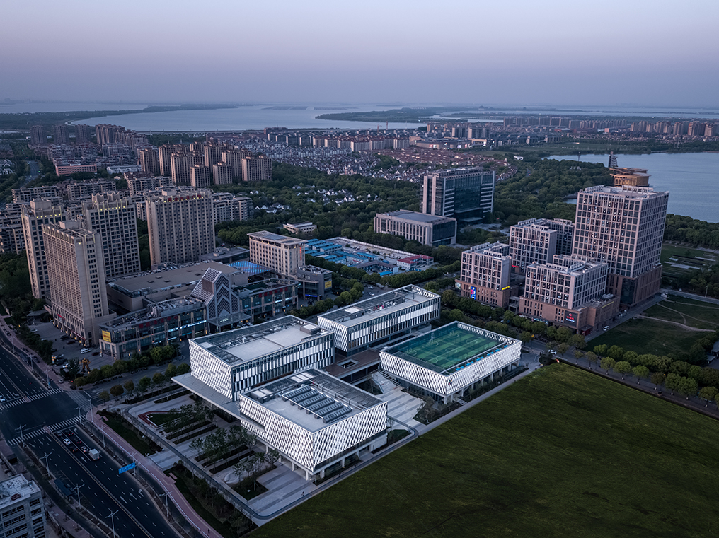 項(xiàng)目位于蘇州工業(yè)園區(qū),主要以劇院、綜合體育館、游泳館、綜合圖書館四大功能板塊組成。四個(gè)場(chǎng)館根據(jù)功能及定位分開設(shè)計(jì),并且用半開放式的平臺(tái)連接。保證了每個(gè)場(chǎng)館均有獨(dú)立的出入口可以獨(dú)立運(yùn)營(yíng),減少不同場(chǎng)館因使用時(shí)間不同而造成的能源損耗。