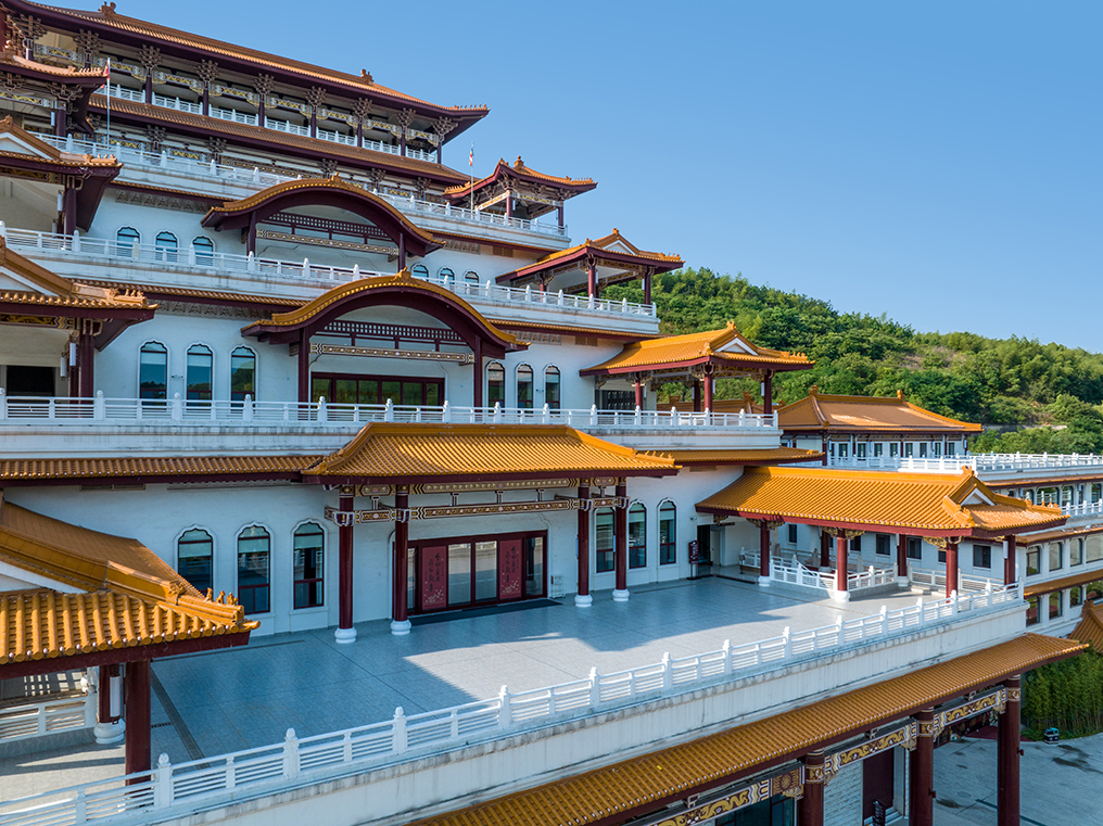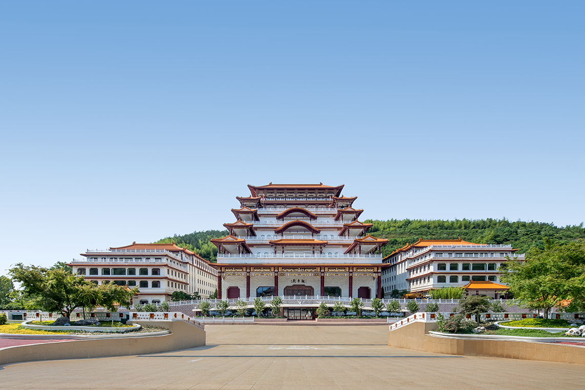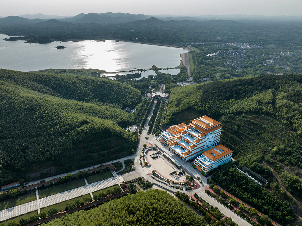 項(xiàng)目位于宜興市大覺寺寺院內(nèi),周邊資源優(yōu)越,依山傍水,形成獨(dú)特的地域景觀特色,是現(xiàn)代與古文化的結(jié)合,具有仿古的江南建筑風(fēng)格,通過佛教文化的引入,傳播佛教思想。建筑依山而建,整體形態(tài)依據(jù)山勢逐步遞進(jìn),與自然融合的同時(shí)又不乏佛教建筑莊嚴(yán)肅穆的氛圍。整體建筑風(fēng)格恢弘大氣,五層退臺(tái)的形式與佛教五乘教法相呼應(yīng),充分展現(xiàn)了中華民族傳統(tǒng)文化的博大精深與深厚底蘊(yùn)。