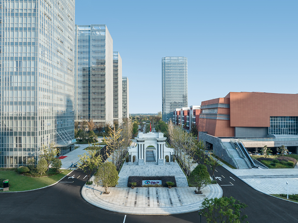 以一軸展校園性空間敘事,筑一館留住先師人文記憶;是先進(jìn)創(chuàng)新一體的科技園區(qū),也是向城市開(kāi)放的休閑景觀。高層研發(fā)建筑群圍合城市界面,展現(xiàn)園區(qū)科技先進(jìn)的一面打造園區(qū)形象名片。并與多層研發(fā)組團(tuán)高低配合,塑造與眾不同的中心軸線,彰顯清華精神的空間延續(xù)性。