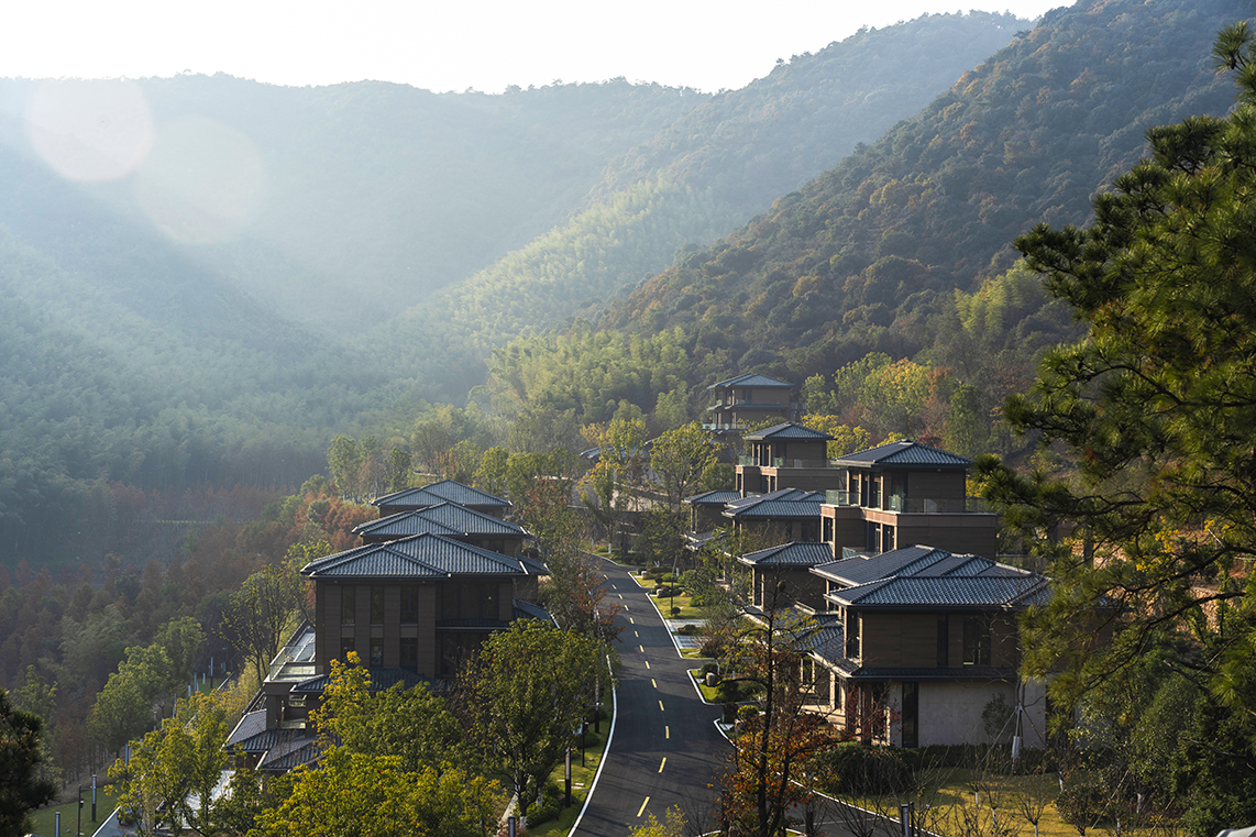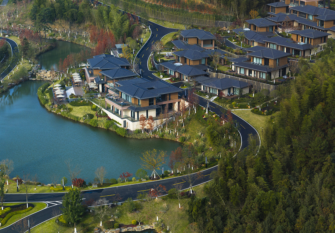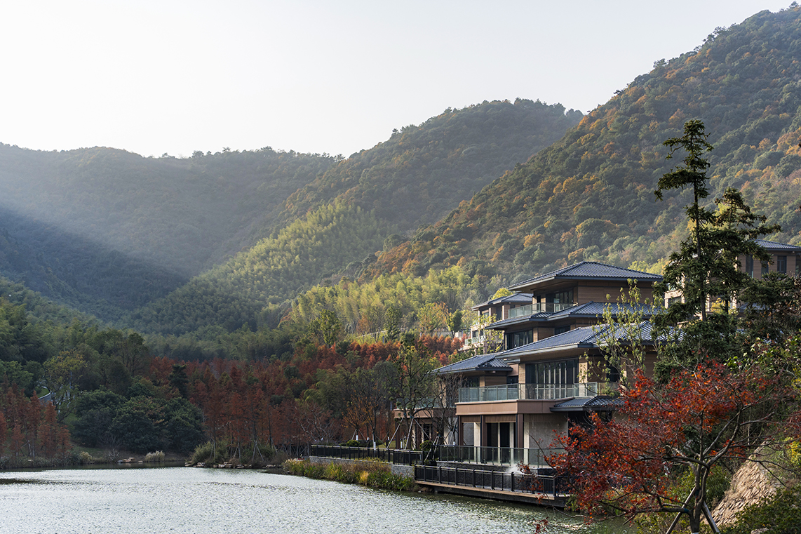 設(shè)計(jì)旨在為現(xiàn)代高強(qiáng)度生活的人們提供一個(gè)安靜,怡然的環(huán)境。青山綠水,炊煙裊裊,藍(lán)天白云,碧波蕩漾,充分利用自然環(huán)境,讓游客無時(shí)無刻與優(yōu)美的山水互動(dòng)。給予游客探索及接觸大自然的機(jī)會(huì)。場地獨(dú)特的自然條件讓建筑得以依山傍水,建筑在滿足使用功能時(shí),尊重自然的饋贈(zèng),在優(yōu)化自然環(huán)境的基礎(chǔ)上,與自然山體、水體融合為一,展現(xiàn)原汁原味的山居生活?;貧w自然的山間聚落布局建筑——人——自然和諧共生的親密關(guān)系。