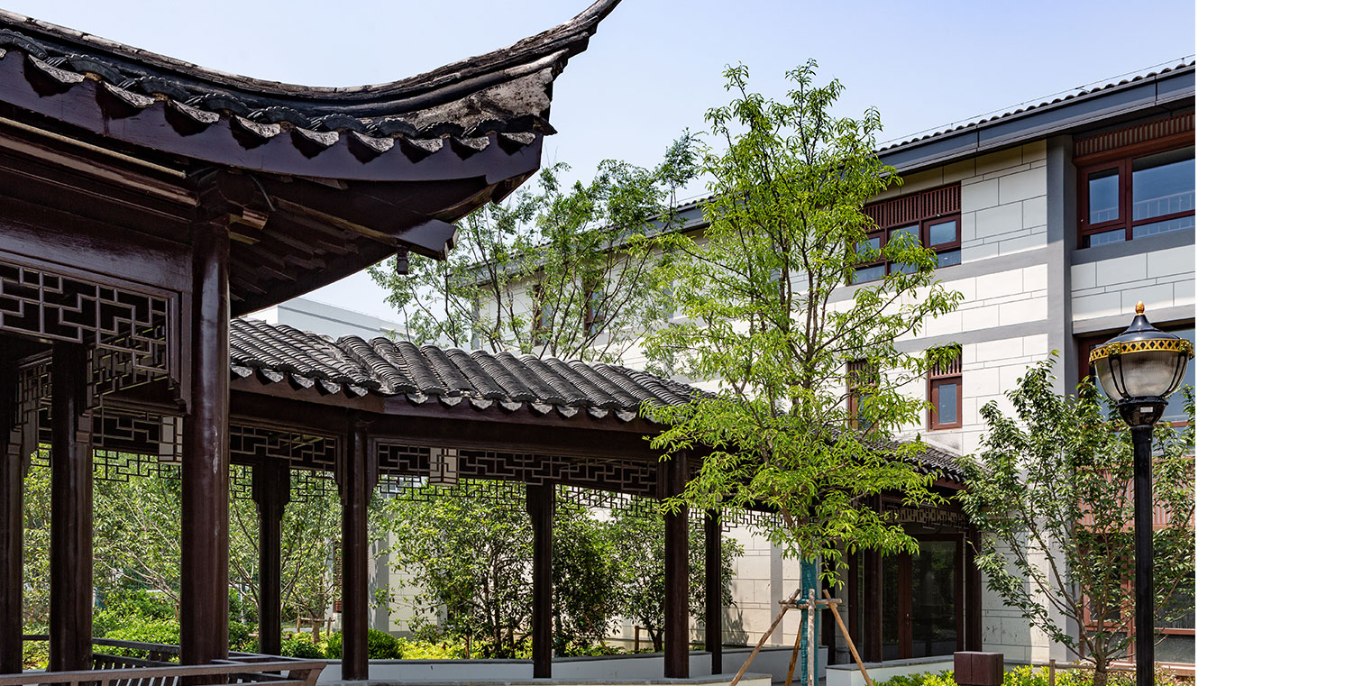 與精神。項目在總體布置上呼應(yīng)古剎布局,形成內(nèi)外禪院結(jié)構(gòu)。對外以房為墻,在古城中圍合出一個相對靜謐祥和的精神空間;對內(nèi)仿照院落形式,利用各個組團形成各自的庭院空間,保證每個養(yǎng)老單元的相對獨立。設(shè)計結(jié)合傳統(tǒng)建筑的生長形態(tài),在建筑與庭院的空間比例基礎(chǔ)上進行城市肌理的織補,形成與西園寺融為一體的城市圖底,實現(xiàn)了“隱于古城,融于古寺”的空間意境。