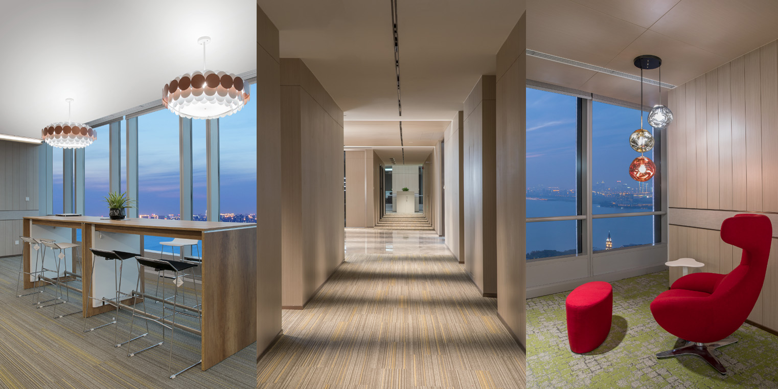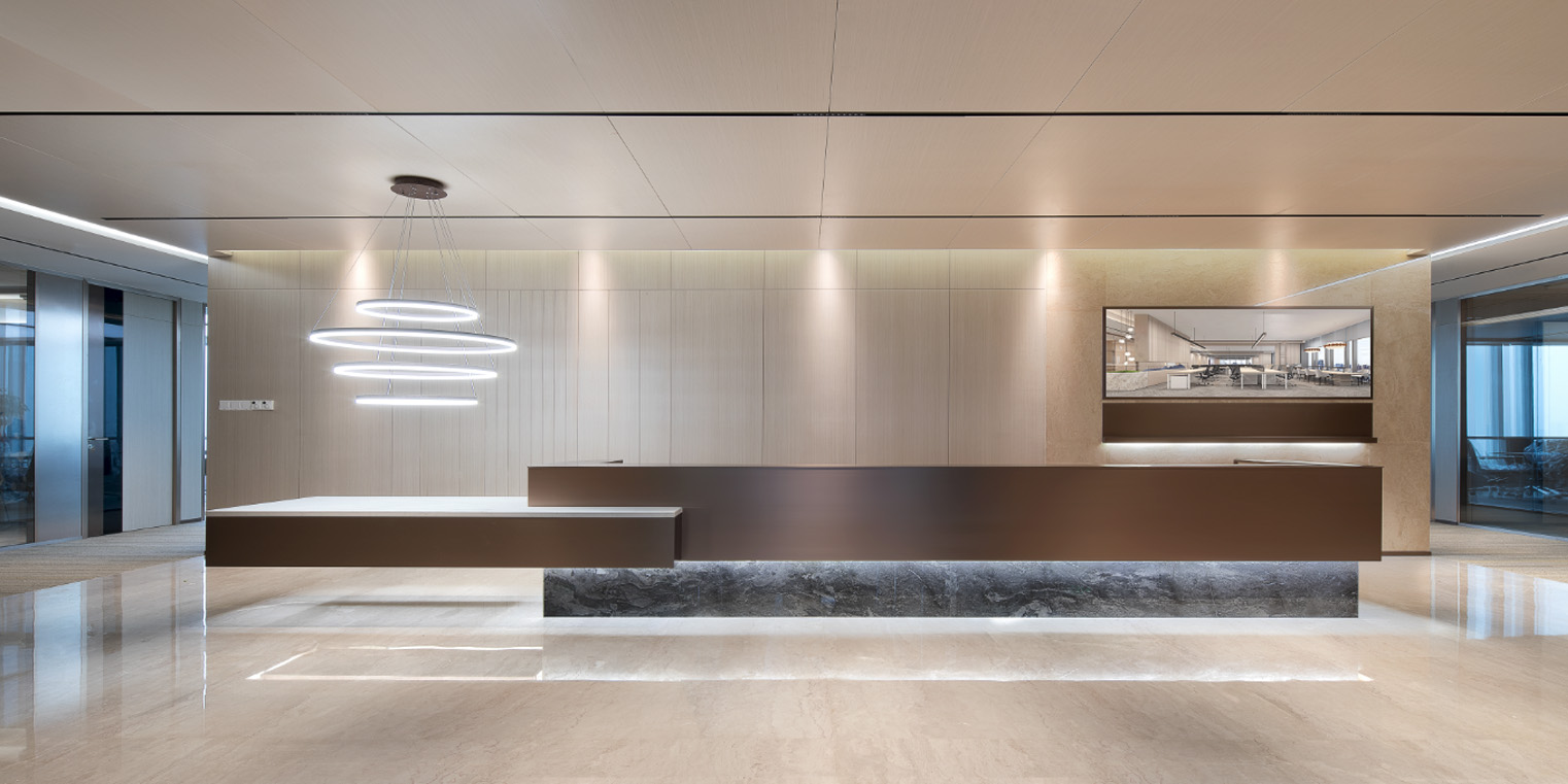 上海金融期貨信息技術(shù)有限公司蘇州分公司項(xiàng)目位于月亮灣區(qū)域制高點(diǎn)中新大廈38層。當(dāng)離地垂直高度超過(guò)162m,設(shè)計(jì)師希望這個(gè)空間擁有足夠的寬度,用來(lái)裝下每個(gè)人的情緒。