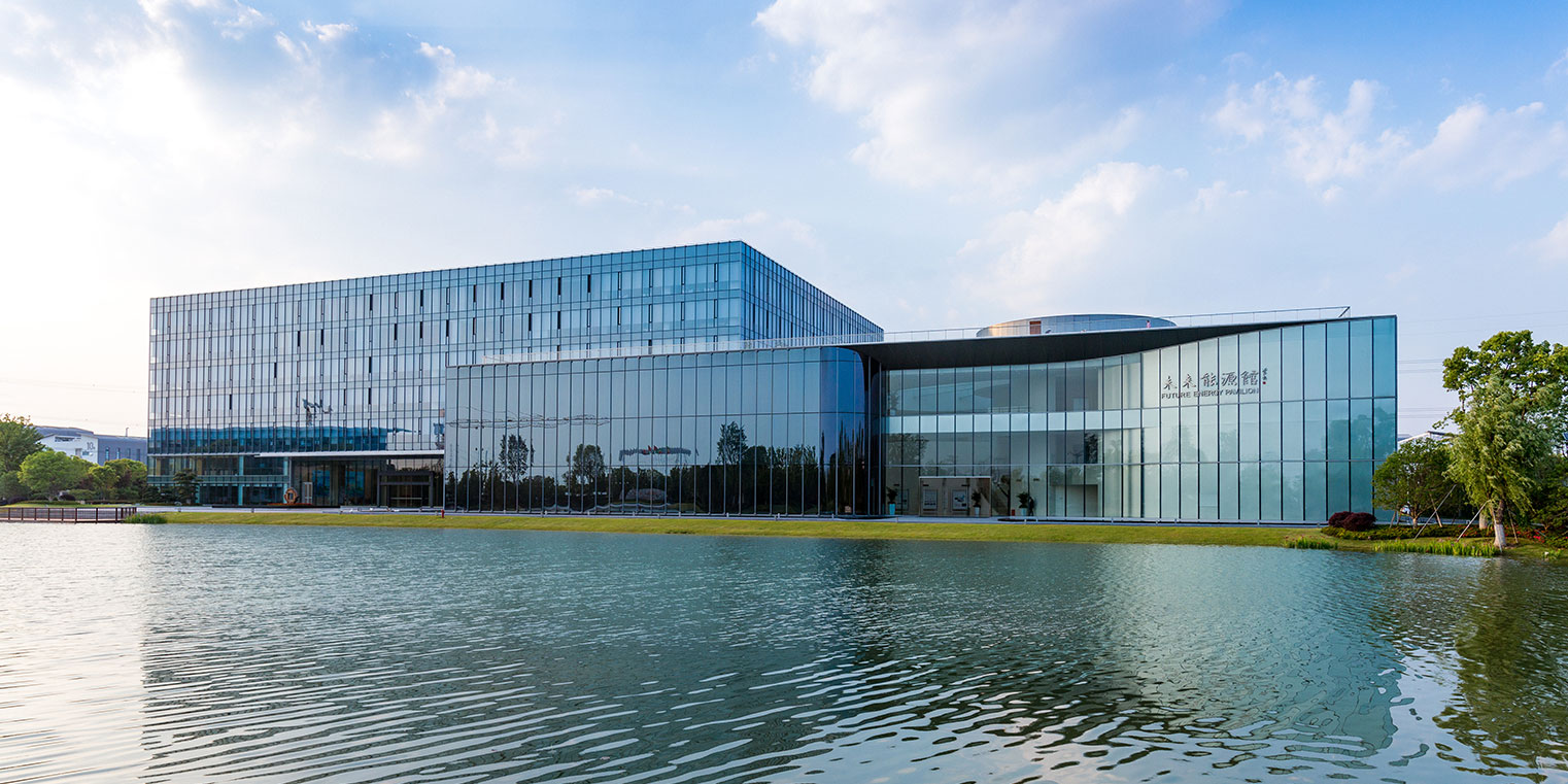 項(xiàng)目二期包括科研大樓(主樓)和未來(lái)能源館(裙房),作為全球新能源及硅材料研究的領(lǐng)軍項(xiàng)目建設(shè)秉著因地制宜、被動(dòng)主動(dòng)結(jié)合、建筑技術(shù)一體化設(shè)計(jì)等理念,制定綠色技術(shù)策略,實(shí)現(xiàn)節(jié)能舒適、綠色生態(tài)、現(xiàn)代實(shí)用的辦公研發(fā)大樓。 項(xiàng)目亮點(diǎn): 1、可再生能源一體化設(shè)計(jì):太陽(yáng)能系統(tǒng)布置于辦公樓屋面、光伏發(fā)電系統(tǒng)布置于屋頂、水面、入口展示、遮陽(yáng)車(chē)棚等處,地源熱泵系統(tǒng)換熱埋管位于景觀水底。 2、自然采光優(yōu)化:外立面主要為玻璃幕墻結(jié)構(gòu),自然采光效果良好,同時(shí)為了解決大采光進(jìn)深的問(wèn)題,分別在主樓和展廳樓設(shè)置了大面積的采光天窗。 3、新風(fēng)系統(tǒng)采用熱回收式新排風(fēng)機(jī)組,電梯采取變頻調(diào)速拖動(dòng)方式。 4、設(shè)置合理的智能化系統(tǒng):包括智能化集成系統(tǒng)、信息設(shè)施系統(tǒng)、信息化應(yīng)用系統(tǒng)、建筑設(shè)備管理系統(tǒng)和公共安全系統(tǒng)、機(jī)房工程及建筑環(huán)境等要素。