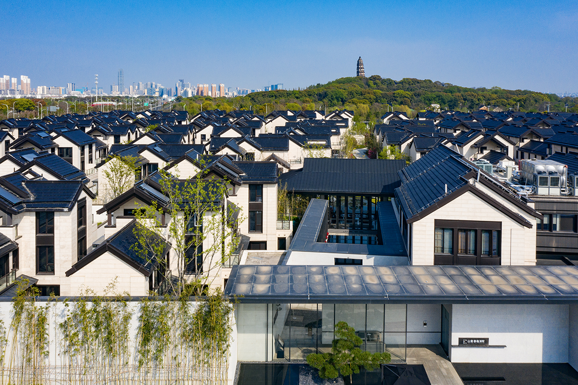 項目遵循蘇州老城的規(guī)劃原則,傳承傳統(tǒng)的城市脈絡(luò)和居住空間形態(tài),以街、巷、坊、弄、院的多重空間秩序布局,讓整個項目從主入口門廳這一公共空間到公共庭院這一半私密空間再到各戶小院落的私密空間的過渡,營造出親切、自然、隱蔽的多重歸家動線。同時設(shè)計希望打造一條貫穿基地東西向的景觀軸線,將水系、人文景觀等引入地塊內(nèi),形成“一軸一核”有機生長的城市肌理。內(nèi)部造就大面積的綠化,使得整個小區(qū)景觀均好性達到最佳、組團空間充滿意境和層次、造就富有趣味小區(qū)形象。