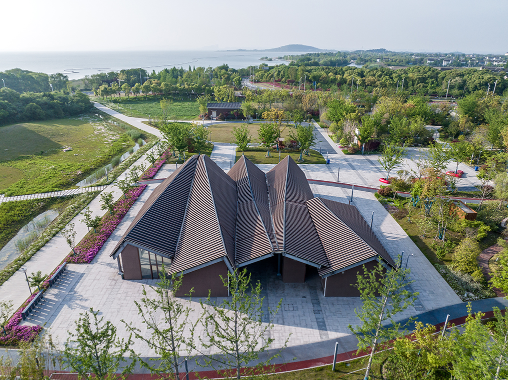 項目與南太湖毗鄰,以“一心、二環(huán)、三片區(qū)”為規(guī)劃格局,以游客中心為內核,構建自然山水騎行及生態(tài)體驗騎行兩大環(huán)線,打造了換乘區(qū)、雨水花園區(qū)、交通區(qū)三大區(qū)域。